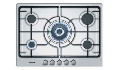 Inox gaskookplaat van 70 cm met 5 gasbranders.