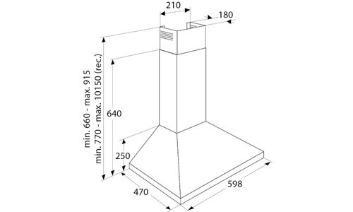 ++ Breedte: 250 mm ++ Afzuigkracht (hoogste stand): 380 m³/h ++ Geluidsniveau (Maximum): 64 dB(A) ++