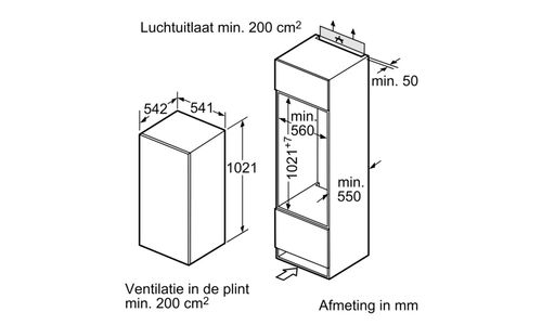 Integreerbare koelkast 102.5 x 56 cm