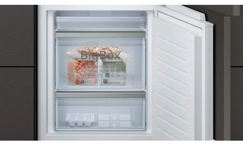 Deze integreerbare koel-vriescombinatie met LowFrost en ledverlichting aan de binnenzijde houdt etenswaren tot wel 2 keer langer vers.