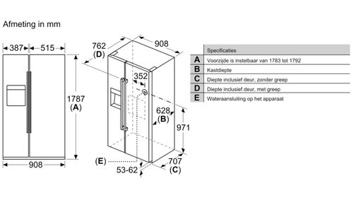 | Type koelkast | Side-by-side (Amerikaans) |