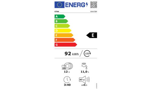 ++ Energieklasse: E ++ Geluidsniveau: 47 dB(A) ++ Aantal bestekken: 12 ++