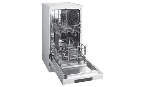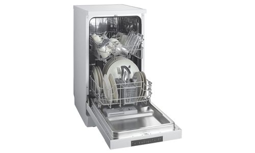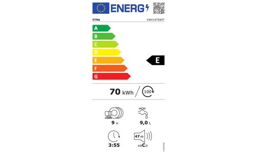 Deze vrijstaande, slimline vaatwasser is ideaal voor wie veel wensen heeft maar weinig ruimte. De ETNA VWV147SW is een smalle, vrijstaande vaatwasser met een efficiënte indeling en veel handige functionaliteiten. Hij biedt ruimte aan negen couverts en heeft een bovenkorf die in hoogte verstelbaar is. De witte vaatwasser heeft vijf programma’s, van snel of spoelen tot een intensief programma. De reinigingstemperatuur varieert van 40 tot 60 graden Celsius. Heb je een dagje niet zo veel vaat, dan stel je de vaatwasser op halve belading in zodat je ook geen water of energie verspilt. De VWV147SW controleert automatisch of er nog voldoende zout en glansmiddel is.
