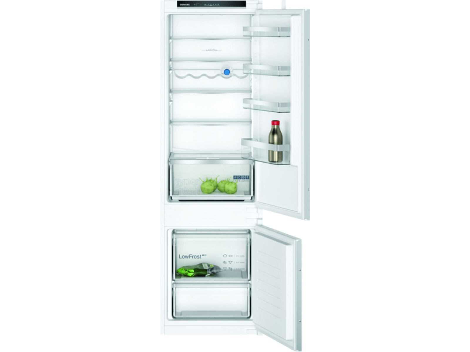 Inbouw koel-/vriescombinatie met hyperFresh om groente en fruit langer vers te houden en LED verlichting voor heldere verlichting.