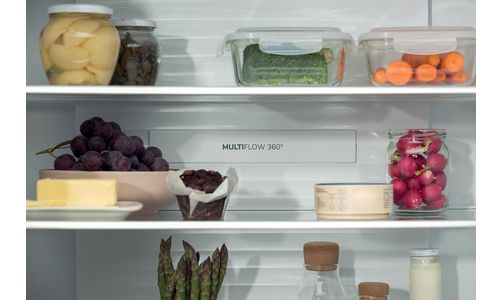 ETNA introduceert haar eerste Crossdoor koel-vriescombinatie, de MKV581RVS. De dubbele deuren bovenin openen naar het heerlijke ruime koelgedeelte met een inhoud van maar liefst 278 liter en is voorzien van de nieuwste, duurzame technieken. Groot voordeel is dat je in dit brede koelgedeelte gemakkelijk grote schalen en pannen kunt zetten. In de CrispZone lade aan de linkerzijde blijven groenten en fruit langer vers dankzij de speciale luchtvochtigheidsregeling. De Convert FreshZone aan de rechterkant is een lade met apart instelbare temperatuur en is instelbaar voor het bewaren van vlees en vis of voor groente en fruit. De LED verlichting zorgt er voor dat je overal goed zicht hebt in het koelgedeelte. Je kunt er ook zeker van zijn dat de temperatuur overal stabiel is dankzij de speciale MultiFlow360° ventilatietechniek, waardoor eten langer houdbaar blijft. Het brede, dubbeldeurs, vriesgedeelte onderin heeft zes grote transparante laden. Gelukkig hoef je deze nooit te ontdooien dankzij No-Frost Plus. In het vriesgedeelte vind je ook de IceTwister waarmee je eenvoudig ijsblokjes maakt.