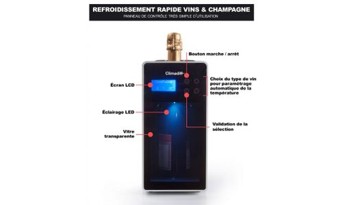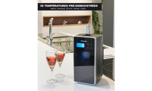 Flessenkoeler, capaciteit: 1 fles (diameter 7,4 tot 8,5 cm), vooraf ingesteld op 30 temperaturen (6° tot 18°C) voor gebruiksgemak - automatisch onderhoud van vooraf ingestelde temperatuur, touchscreen en elektronisch display