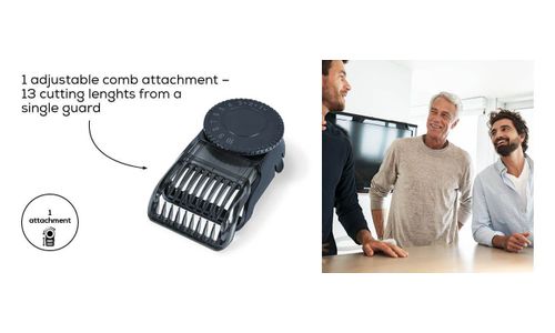 In lengte verstelbaar roterend opzetstuk met 13 verschillende trimlengtes voor lichaam en gezicht