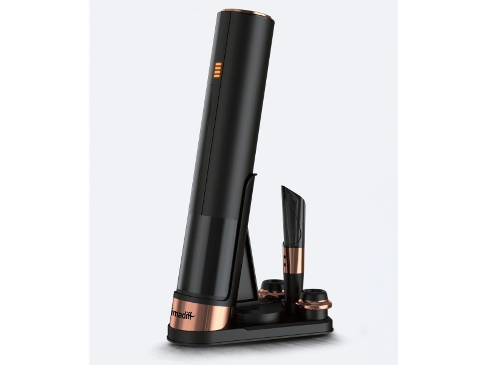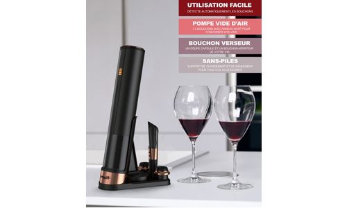 4 in 1 Automatische wijnopener zonder knoppen + elektronische vacuümpomp en kurk om open flessen te beschermen tegen oxydatie. Oplaadbaar draadloos elektrisch. Modern ontwerp, alle kurktypen, tot 30 flessen openen met 1 batterijlaadsysteem, verwijderbare kurkkapmes