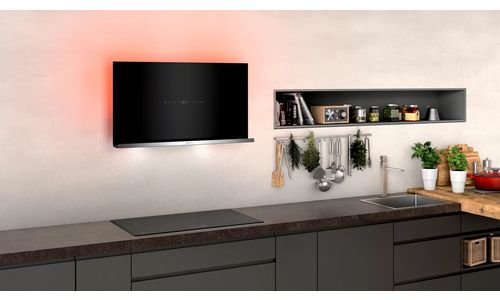 Dampkap HC - N90 FlatDesign 90cm, Flat Design, 394 / 717m³/u, 57 dB, randafzuiging, LED ver., Amb.Light , Air Sensor, BLDC, HoodControl Zwart B