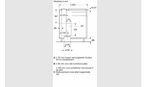 Guided Air technologie om damp en geuren over de gehele kookplaat efficiënt af te voeren