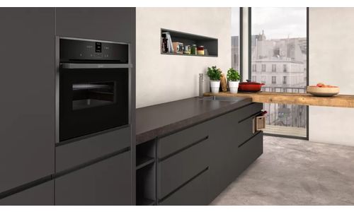 Oven N70 Combi-microgolf 45 cm, 6 verw.wijzen, 900W microgolf, 14 auto progr., LED-verl. Zwart