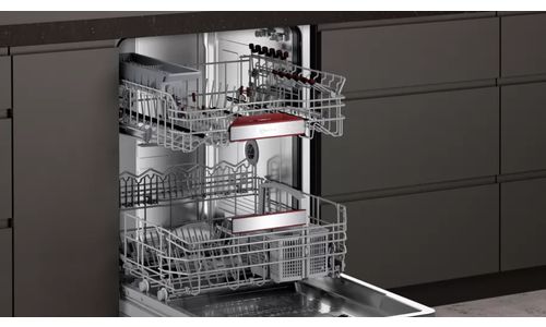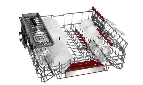 Creëer geriefelijke ruimte in een fractie van een seconde en verander het derde niveau in een veelzijdige bovenverdieping: ga voor de optionele Flex 3e mand met zijn schuifelement voor extra kopjes en kommen of kies onze Flex-besteklade voor bestek. Je servies past mooi in de onderste korf met 8 neerklapbare rekken en in de bovenste korf met 6 neerklapbare rekken. Zachte siliconen schuifbeschermers houden je glazen in de bovenste korf vast, en een hoger frame in de onderste korf biedt stevige steun aan hoge voorwerpen zoals snijplanken. Ervaar hoe soepel de korf op de kogelgelagerde wieltjes in de kuip schuiven en bemerk de handige korfstoppers op de voorwielen die ervoor zorgen dat je de korf niet over de deur trekt.