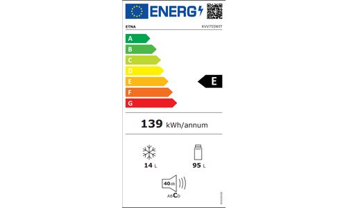 Het kan koelen, het kan vriezen. Met de KVV755WIT van ETNA althans. Deze compacte, allround koelkast van ETNA (55 cm breed) is altijd een betrouwbare keuze. Dit witte tafelmodel heeft een koelgedeelte van 95 liter en een handig ****vriesgedeelte van 14 liter. Het duurzame tafelmodel draagt energielabel E en heeft heldere LED verlichting. De ruime koelkast heeft onder het vriesgedeelte twee glazen legplateaus met een lekrand. Onderin de koelkast bevindt zich de brede groentelade voor groenten en fruit. Dit tafelmodel is voorzien van een variabele deurindeling.