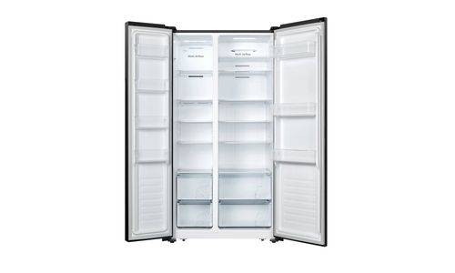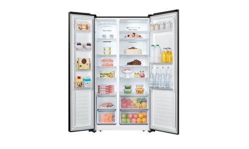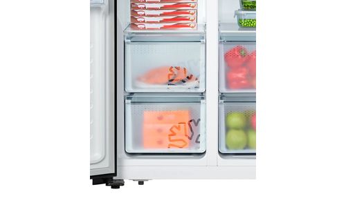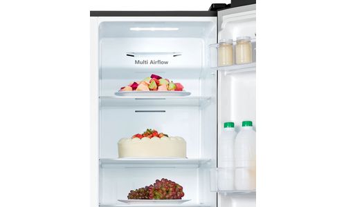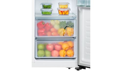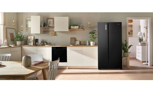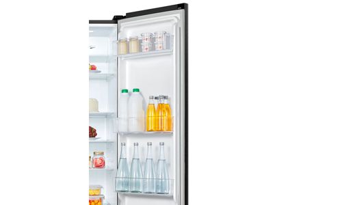 Het zwarte design onderstreept het moderne karakter van deze koelkast met apart koel- en vriesgedeelte. Het LED display op de buitenzijde van de linkerdeur zorgt ervoor dat je in één oogopslag de temperatuur in het vries- en in het koelgedeelte ziet en eenvoudig aanpast. Het koelgedeelte aan de rechterzijde heeft een netto inhoud van maar liefst 334 liter en biedt een zee aan flexibele opbergruimte. Zo zijn er vijf plateaus van veiligheidsglas, waarvan er vier in hoogte verstelbaar zijn. Dankzij de heldere LED verlichting zijn sowieso alle secties goed verlicht. Het ****vriesgedeelte heeft een inhoud van 185 liter en een FastFreeze functie waarmee je voedingswaren extra snel invriest om voedingsstoffen te bewaren. Dankzij No-Frost Plus blijft het vriesgedeelte vrij van ijs en hoef je nooit meer te ontdooien. Ook wordt met deze functie condensvorming in het koelgedeelte tegen gegaan. De MultiFlow 360° ventilator zorgt voor een gelijkmatige koeling in zowel het koel- als het vriesgedeelte, zodat producten lang vers blijven.