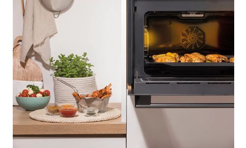 De ETNA CM914MZ is een compacte oven met microgolffunctie in trendy matzwart design gecombineerd met zwart glas. De 1000W inverter microgolf zorgt ervoor dat jouw gerechten gelijkmatig verwarmd worden door de gelijkmatige afgifte t.o.v. een reguliere microgolf zonder invertor Dankzij de automatische ontdooifunctie staat een gerecht uit de vriezer binnen een mum van tijd op tafel. De veelzijdige XXL oven biedt het ultieme bak- en schoonmaakgemak. Met 51 liter inhoud heb je heel veel ruimte. De mogelijkheden met deze Turbo hetelucht oven zijn eindeloos. Naast 22 automatische programma’s, is de oven in te stellen van 30 tot 275°C. Van slow cooking schotel tot home made pizza: met de ETNA CM914MZ maak je het altijd op de perfecte temperatuur. De ExtraSteam functie in combinatie met water op de bakplaat zorgt dat brood 25% sneller rijst en een heerlijke krokante korst krijgt. De speciale StepBake functie zorgt ervoor dat je in twee fasen kunt bakken waarna de oven automatisch overgaat op gratineren. Ideaal, zo stel je vooraf verschillende programma’s, temperaturen en tijden in, en heb je er daarna geen omkijken meer naar. Bovendien heeft dit topmodel geen draaiplateau maar insteekniveau’s zodat je op meerdere niveau’s kan bakken en er ruimte is voor ovenschalen. Schoonmaken is gelukkig ook een fluitje van een cent. De luxe oven beschikt over een uitneembare binnenruit en hydrolyse functie, waarmee de binnenzijde in 30 minuten gereinigd wordt met behulp van waterdamp. Dit model is zowel horizontaal als verticaal fraai te combineren met de ovens uit ETNA’s matzwarte ovenlijn, zoals de OPS916MZ OS916MZ OM916MZ.