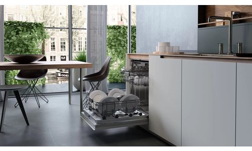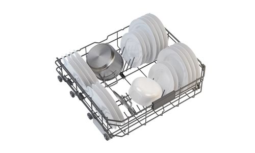Praktisch en gebruiksvriendelijk. De ETNA VW344N is een geïntegreerde vaatwasser met een extra derde lade voor bestek zodat je in de onderkorf meer ruimte overhoudt voor andere vaat. De besteklade is flexibel in te stellen, handig wanneer je bijvoorbeeld wijnglazen in de middelste korf wilt plaatsen. Een extra sproeiarm boven in de vaatwasser zorgt voor een extra intensieve reiniging van de bovenste besteklade. De vaatwasser biedt ruimte aan maar liefst 16 couverts en heeft een bovenkorf die zelfs met volle belading in hoogte verstelbaar is. Op het LCD-display met resttijdindicatie kun je een van zeven programma’s kiezen. Slim: je kan de vaatwasser zo instellen dat de deur automatisch opent als het programma klaar is, zodat de vaat perfect droogt.
