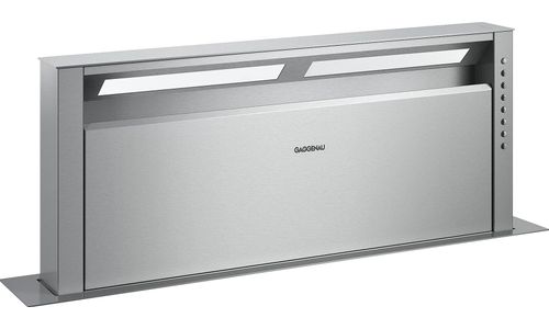 - Telescopisch afzuigsysteem op werkblad, wanneer niet in gebruik kan het volledig in het werkblad neergelaten worden.