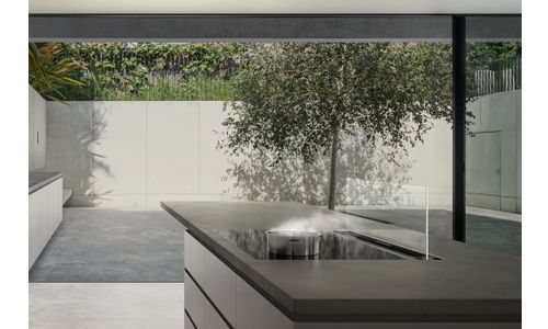- Telescopisch afzuigsysteem op werkblad, wanneer niet in gebruik kan het volledig in het werkblad neergelaten worden.