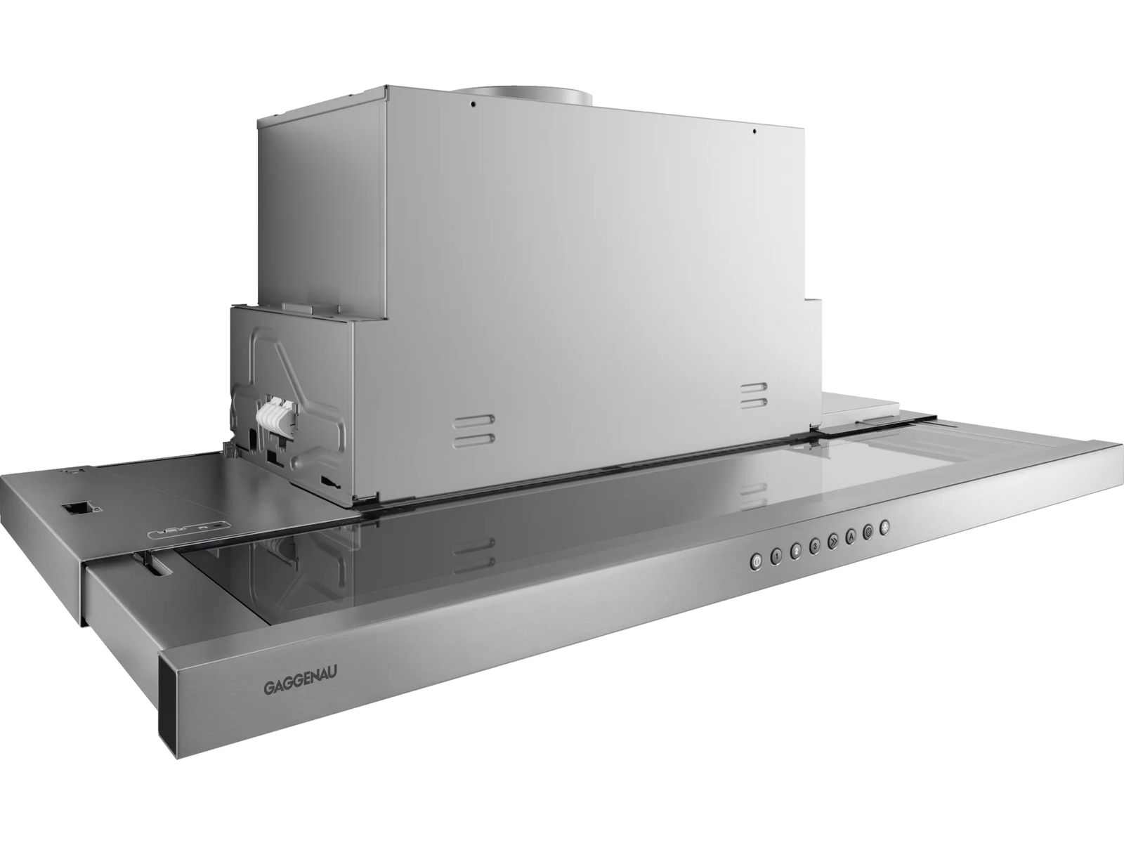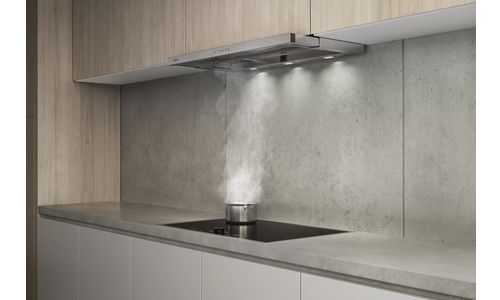 - Discreet design van de telescopische dampkap door het geïntegreerde glazen paneel in het dampscherm