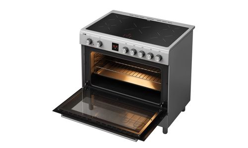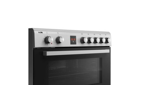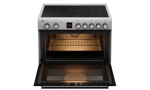 De ruime multifunctionele oven heeft een inhoud van maar liefst 105 liter en is voorzien van 5 insteekniveaus met zijrekjes. De oven heeft een temperatuurbereik van 50 tot 270ºC en is voor het gemak voorzien van binnenverlichting. Het digitale display is voorzien van een timer en uitschakelfunctie voor de oven. De hoogte van het fornuis is instelbaar van 87,5 tot 93 cm. Voor extra opberggemak heeft het fornuis een opbergvak met klep.