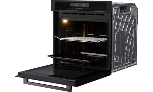 De OM670MZ combineert zwart glas met luxe matzwarte details in het display en een subtiel matzwart handvat. Combineer dit met de full touch control bediening met handige slider en je hebt de perfecte oven voor liefhebbers van zwarte keukenapparatuur.