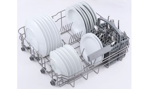 De ETNA VW544N volledig geïntegreerde vaatwasser doet wat ‘ie belooft. Met energieklasse D en een geluidsniveau van 44 dB(A) is dit model een prima keuze als je op zoek ben naar een middenklasser vaatwasser die niet te duur is in aanschaf. Je kunt er met gemak 14 couverts in kwijt, voldoende voor een gemiddeld huishouden. De bovenkorf is in hoogte verstelbaar, zodat je zelf kunt bepalen of je meer ruimte in het onderste of juist het bovenste gedeelte van de vaatwasser nodig hebt. Als extra functie kun je kiezen voor het draaien van een programma op halve belading én kun je kiezen voor een zelfreinigingsprogramma. Want je wilt natuurlijk niet alleen schone vaat, een schone vaatwassers is ook wel zo fijn.