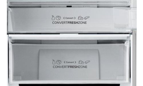Het koelgedeelte is voorzien van een elektronische thermostaat en MultiFlow 360° ventilatietechniek, wat zorgt voor een stabiele temperatuur en daarmee zorgt voor een langere houdbaarheid van voedingswaren. Dankzij de led-binnenverlichting heb je goed zicht in de koelkast. Het koelgedeelte is voorzien van 4 glazen legplateaus en een flessenrek. Het koelgedeelte heeft 2 Convert Freshzones, waarvan 1 met handmatige luchtvochtigheidsregeling. Stel eenvoudig de temperatuur van de Convert Freshzones in voor het bewaren van groente/fruit of vlees/vis. Zo bewaar je jouw voedingsmiddelen onder de beste omstandigheden.