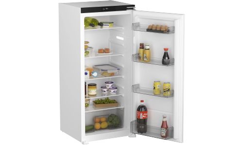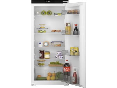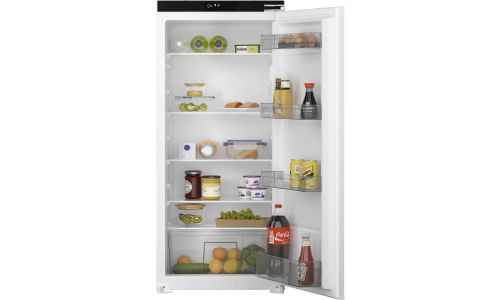 Het koelgedeelte van deze koelkast heeft een netto inhoud van 193 liter en biedt veel opbergruimte. Zo heeft de KKS7122T vijf glazen legplateaus van veiligheidsglas en een transparante groentelade met luchtvochtigheidsregeling. De inbouw koelkast is 122 cm hoog en wordt ingebouwd met het veelgebruikte sleepdeursysteem. Bovendien is de draairichting van de deur voor het inbouwen te bepalen, zodat hij altijd past bij het ontwerp van de keuken. De KKS7122T is voorzien van elektronische thermostaat met led-display en touch control bediening. Met de SuperCool functie breng je nieuwe boodschappen snel op de juiste temperatuur. Deze koelkast is voorzien van een alarm bij open deur en bij te hoge temperaturen.