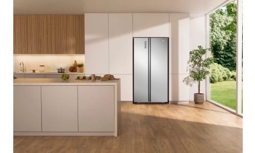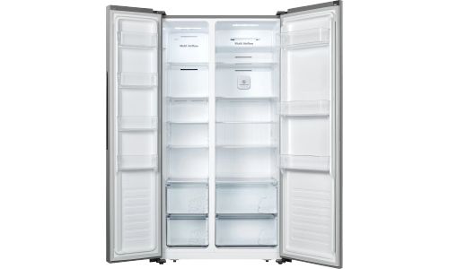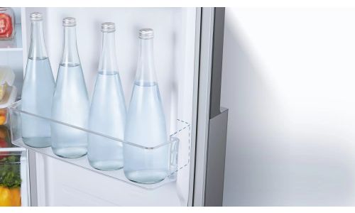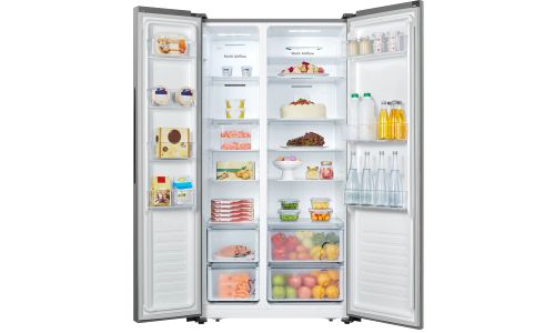 Het LED display op de buitenzijde van de linkerdeur zorgt ervoor dat je in één oogopslag de temperatuur in het vries- en in het koelgedeelte ziet en eenvoudig aanpast. Het koelgedeelte aan de rechterzijde heeft een netto inhoud van maar liefst 334 liter en biedt een zee aan flexibele opbergruimte. Zo zijn er vijf plateaus van veiligheidsglas, waarvan er vier in hoogte verstelbaar zijn. Dankzij de heldere LED verlichting zijn sowieso alle secties goed verlicht. Het ****vriesgedeelte heeft een inhoud van 185 liter en een FastFreeze functie waarmee je voedingswaren extra snel invriest om voedingsstoffen te bewaren. Dankzij No-Frost Plus blijft het vriesgedeelte vrij van ijs en hoef je nooit meer te ontdooien. Ook wordt met deze functie condensvorming in het koelgedeelte tegen gegaan. De MultiFlow 360° ventilator zorgt voor een gelijkmatige koeling in zowel het koel- als het vriesgedeelte, zodat producten lang vers blijven.