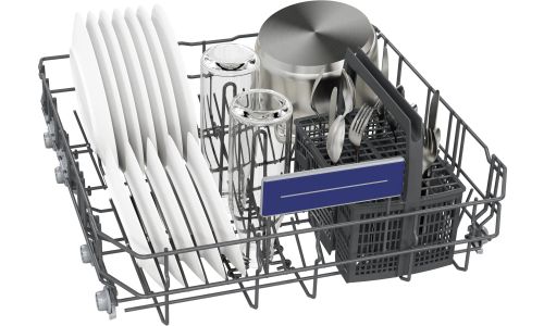 De bovenkorf is voorzien van drie splitsbare en inklapbare plateaus en twee rijen neerklapbare bordenpinnen. De onderkorf heeft vier rijen neerklapbare bordenpinnen. Dit biedt maximale flexibiliteit bij het inruimen. Bovendien kunt u de korven dankzij de handgrepen gemakkelijker uittrekken.