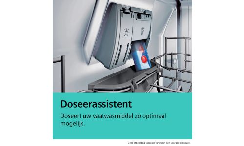 De vaatwastabletten vallen dankzij de Doseerassistent rechtstreeks in een kleine opvangbak. Een nauwkeurig gerichte waterstraal zorgt ervoor dat ze snel oplossen. Het vaatwasmiddel wordt gelijkmatig door het toestel verspreid, zodat u altijd verzekerd bent van optimale afwasresultaten.
