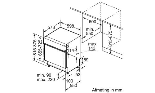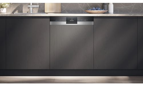 Vaatwasser IQ300 Integreerbaar - 60 x 81,5 - 87,5 cm Klasse C, Home Connect, 6 progr, 5 functies, inox front, warmtewisselaar, kuip Polinox, 9,0 l, 46 dB, besteklade, Vario Flex korven, Rackmatic 3, 7 segments display direct select Geborsteld staal C