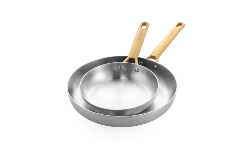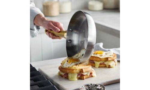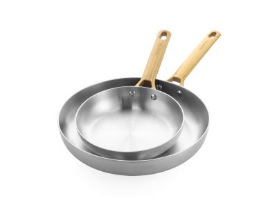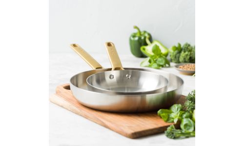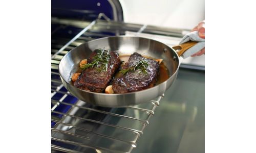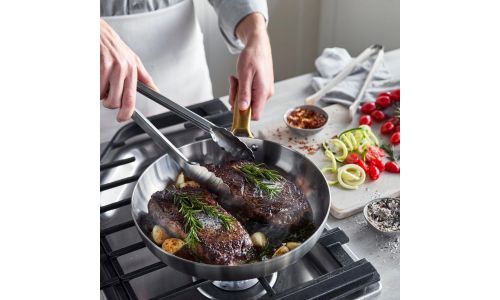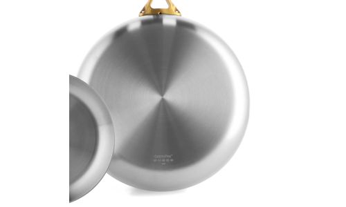 Hoogwaardig 3-laags roestvrij staal (55% gerecycled roestvrij staal) zorgt voor een gelijkmatige warmteverdeling, nauwkeurige controle, perfect bruinen, schroeien, braden, blussen en nog veel meer.